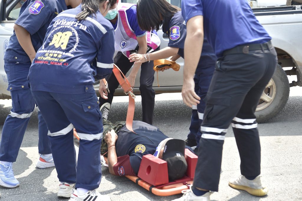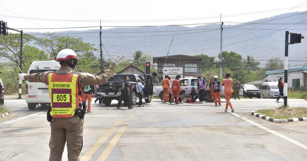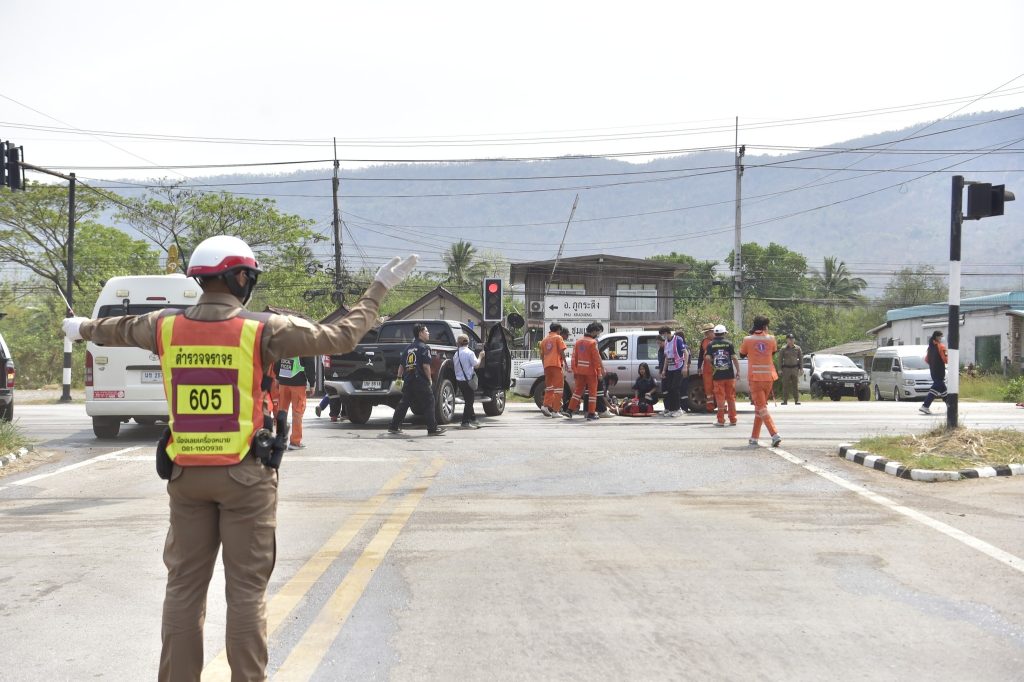 สถานที่ :สามแยกไฟแดงตาดข่า จำนวนผู้บาดเจ็บ : ๑๐ ราย