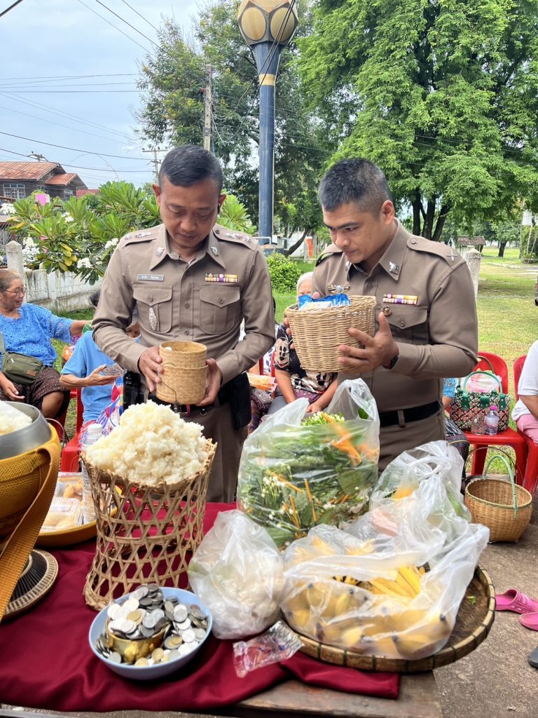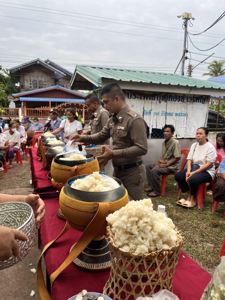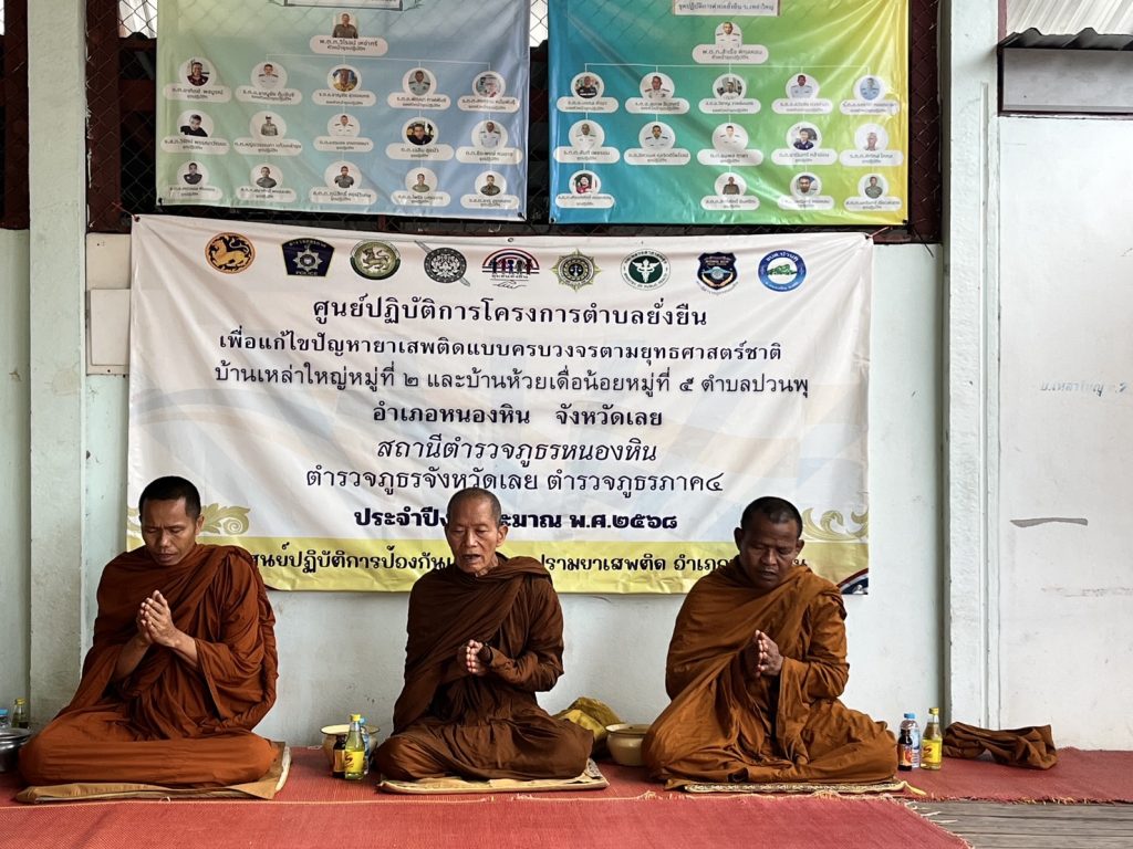 พ.ต.ท.สำเร็จ พิกุลหอม สว.อก.สภ.หนองหิน พร้อมชุด ตำรวจชุมชนยั่งยืนสภ.หนองหิน ร่วมกับ ภาคีเครือข่ายในพื้นที่/กำนันตำบลปวนพุ,ผู้ใหญ่บ้านเหล่าใหญ่ม.2,คณะกรรมการหมู่บ้าน,อสม. ร่วมกันทำบุญประจำปี(บุญเบิกบ้าน)เพื่อความเป็นสิริมงคลแก่หมู่บ้าน,บ้านเรือนและผู้อยู่อาศัย ณ ศูนย์ปฏิบัติการตำบลยั่งยืนฯ ณ ศาลากลางหมู่บ้าน บ.เหล่าใหญ่ อ.หนองหิน จ.เลย