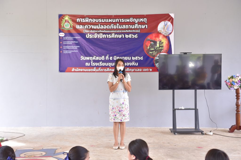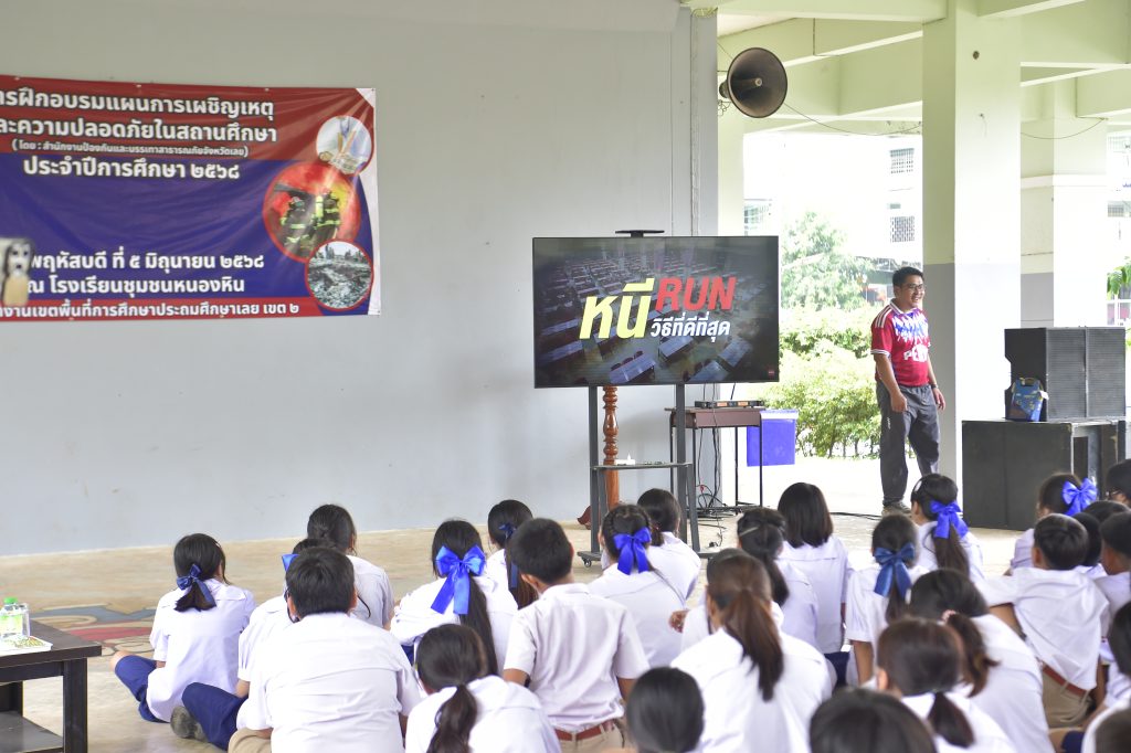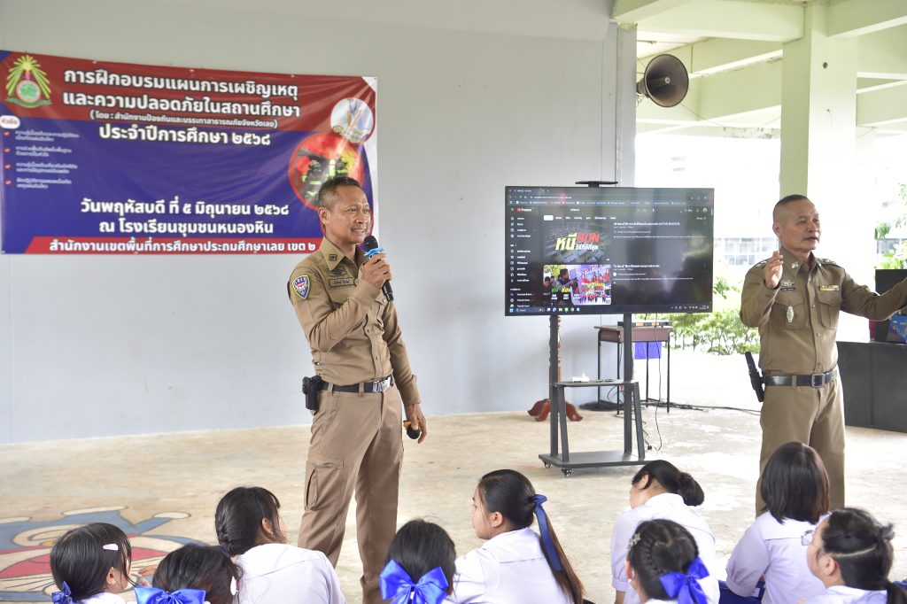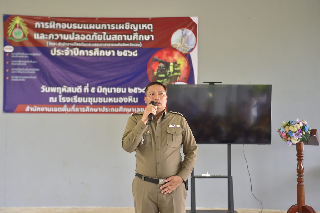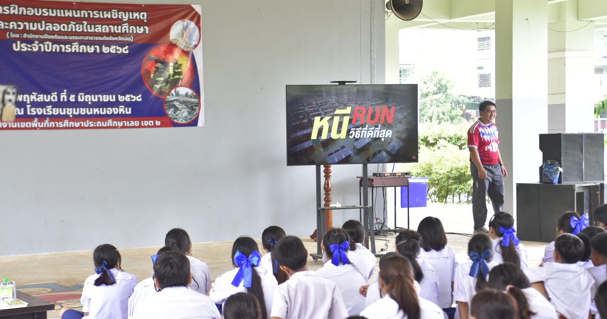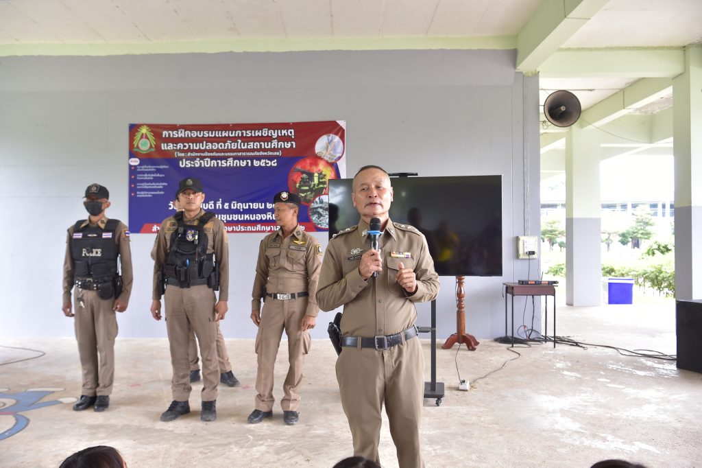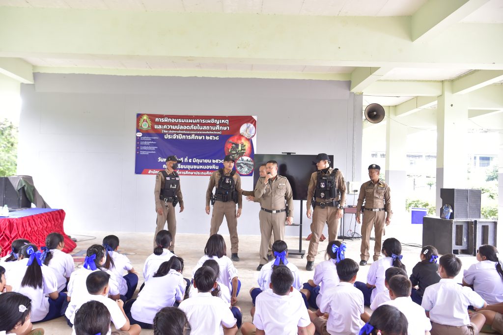 ๖ มิ.ย.๖๘ เวลา ๑๕.๐๐ น. พ.ต.อ.เทอดศักดิ์ บุญโชติ ผกก.สภ.หนองหิน ได้มอบหมายให้ พ.ต.ท.วิโรจน์ เหง่าศรี สวป.ฯ,ร.ต.อ.ชาญชัย สุวรรณทร รอง สว.ธร.ฯ, ชุด ชมส.ฯ, ร้อยเวรป้องกันปราบปราม ร่วมกับ นายชัยยนต์ ศรีทอง ปลัดอำเภอหนองหิน และคณะครู และ นักเรียนโรงเรียนชุมชนหนองหิน ในการบรรยายให้ความรู้ (หนี ซ่อน สู้ ) เมื่อเจอเหตุการณ์มีบุคคลวิกลจริตหรือผู้ป่วยจิตเวช บุกรุกเข้ามาภายในโรงเรียน โดยมีวัตถุประสงค์ เพื่อให้นักเรียนมีความรู้และวิธีปฏิบัติตนในการเอาตัวรอดลดความสูญเสียจากเหตุการณ์ฉุกเฉินและเกิดอันตรายได้ ณ โรงเรียนชุมชนหนองหิน ต.หนองหิน อ.หนองหิน จว.เลย โดยมีนักเรียนเข้ารับฟังการอบรม จำนวน ๕๐๐ คน ระดับชั้นประถมศึกษาปีที่ ๑-๖
