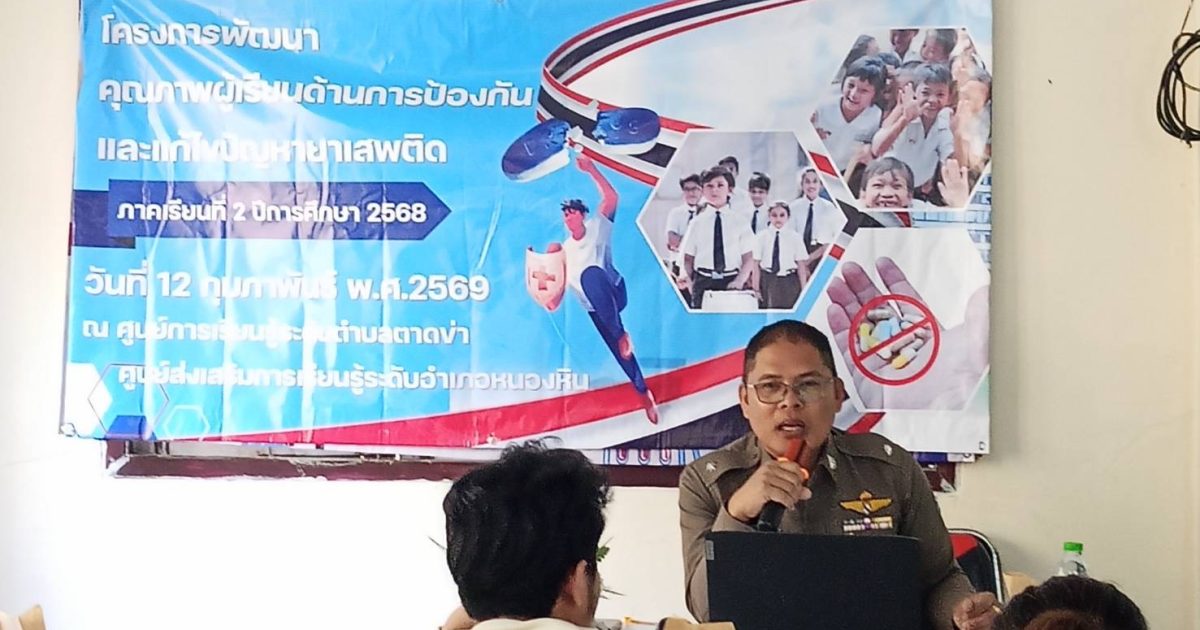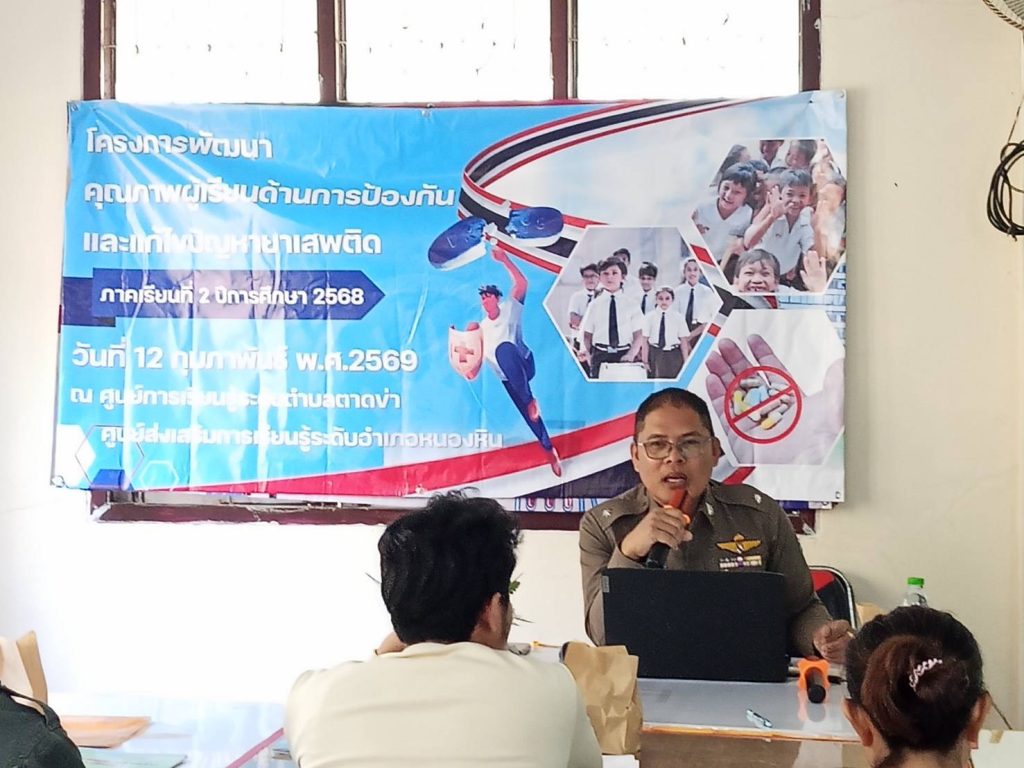 มอบหมายให้ ร.ต.ต.ชัยสิทธิ์ ทองวิเศษ รอง สว.(ป.) สภ. หนองหิน เป็นวิทยากรบรรยายยาเสพติด ที่ ศูนย์การเรียนรู้ ตำบลตาดข่า