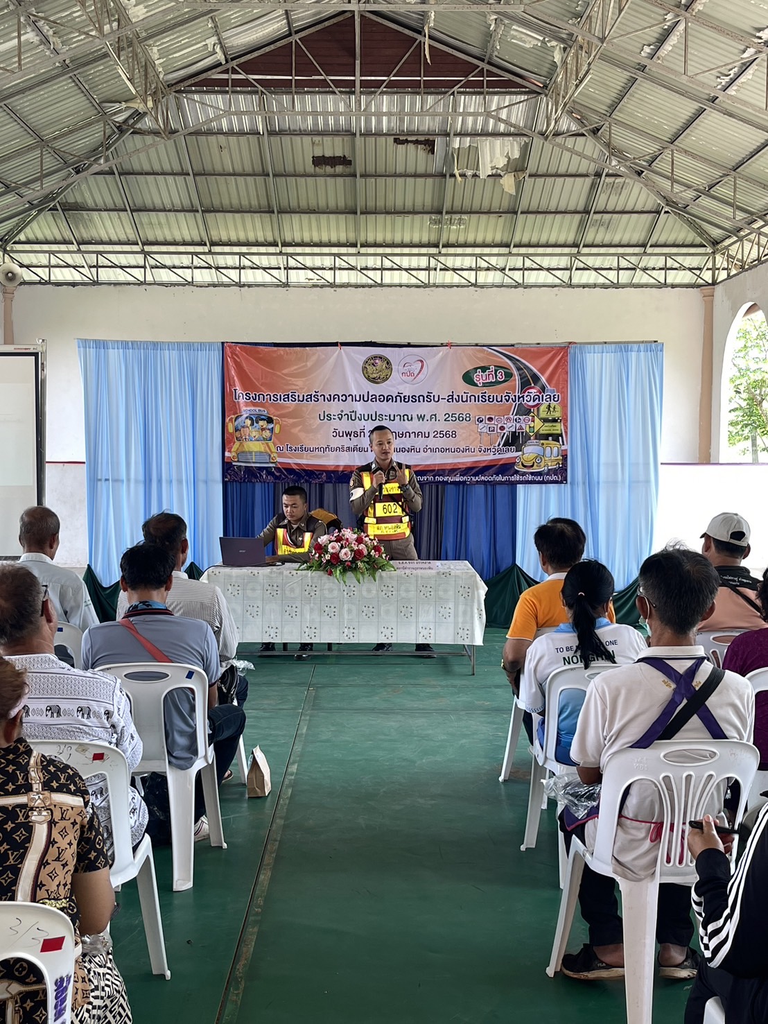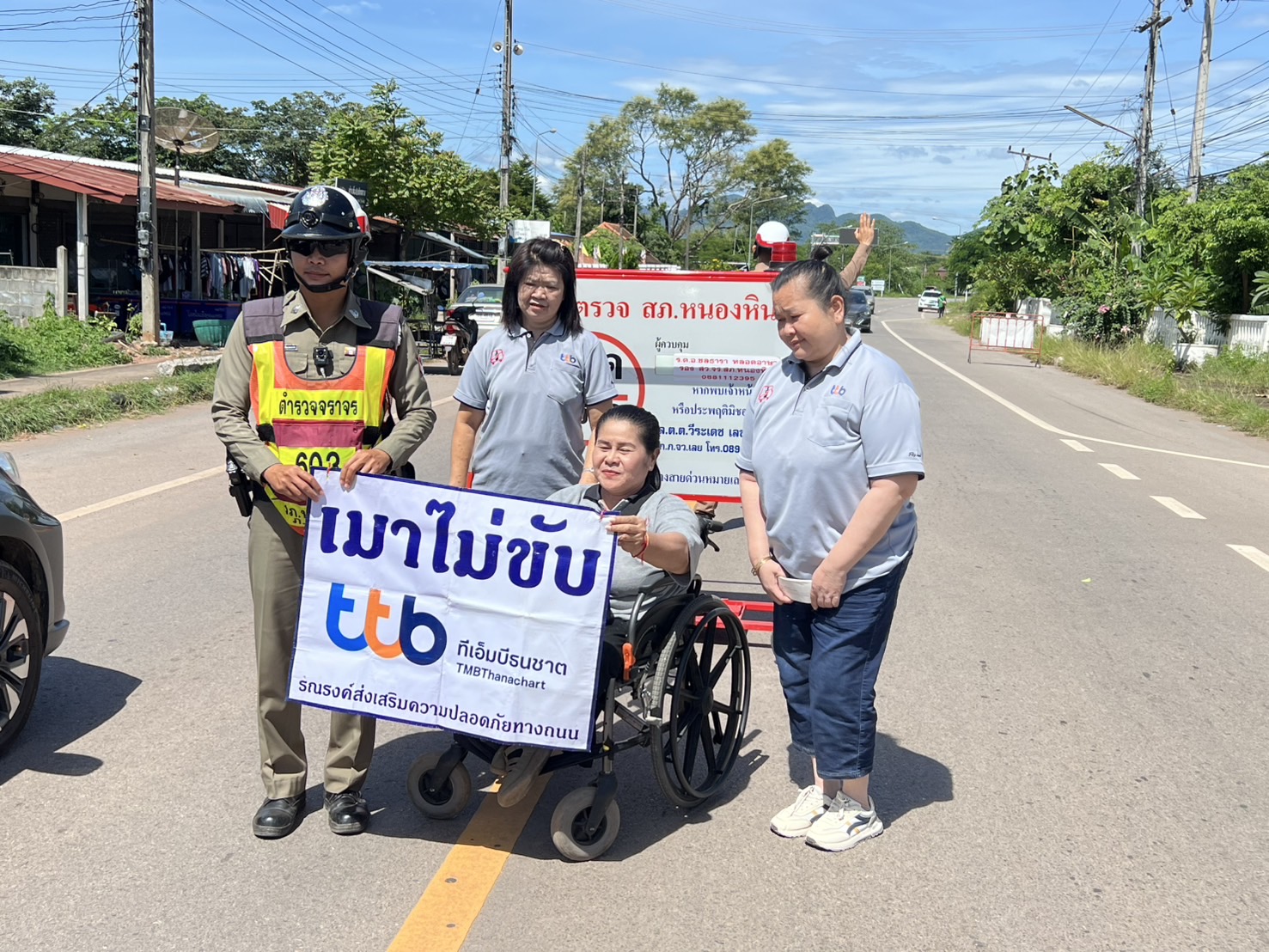 4 ส.ค.2568 เวลา 10.00 น. ร.ต.อ.ชลธารา หลอดอาษา รอง.สว.จร.สภ.หนองหิน และชุดจราจร ว.4 ประชาสัมพันธ์ ส่